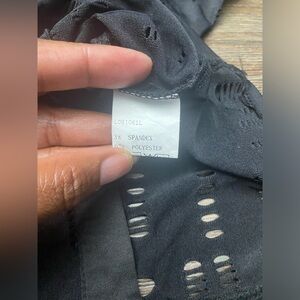 Hollow Out Button Down Shirt Blouse Women Cutout Top collared black XL