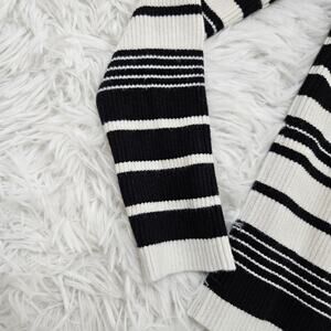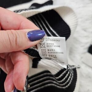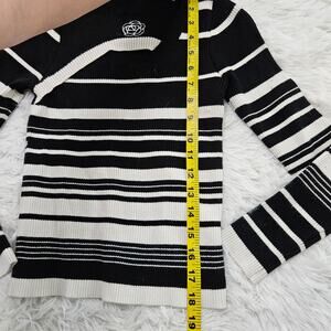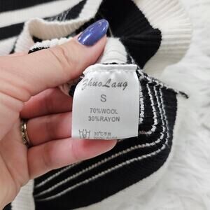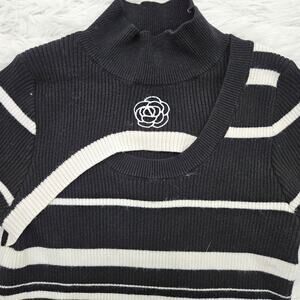 Hollow Out Striped Knit Mock Neck Floral Embroidered Wool Blend Sweater Size S