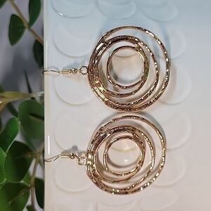 Gorgeous simplicity in concentric circle dangle earrings. Nicely weighted. Hypoallergenic wires.