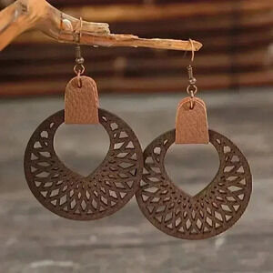 Hollow Round Shape Carved Pattern Dangle Earrings