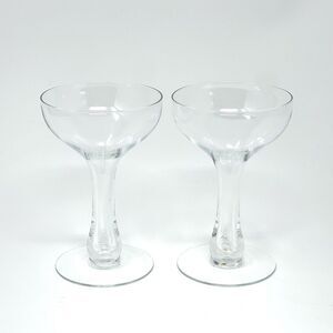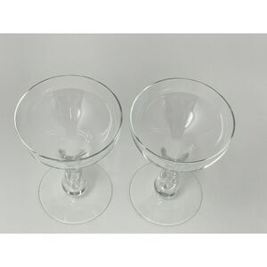 Hollow Stem Champagne Coupes Hand Blown Clear Glasses 5” Set Of 2 Vintage MCM