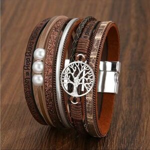 Add this gorgeous Hollow Tree Of Life Letters Pearl Women's Leather