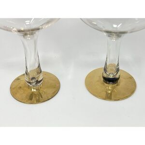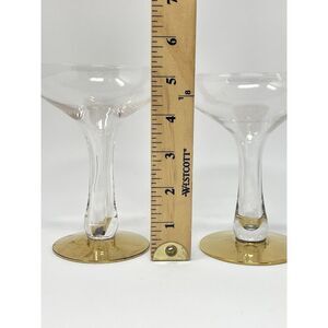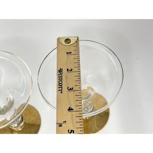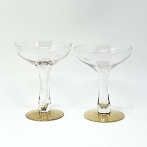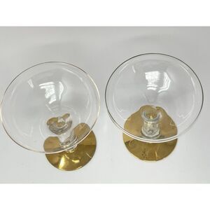 Hollow Stem Champagne Coupes Hand Blown Clear Glasses 5x4” Set Of 2 Gold Bases