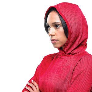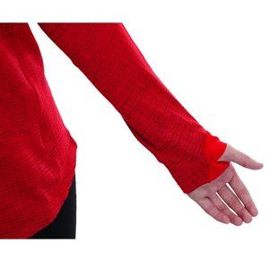 This lightweight red hooded pullover keeps you warm w/o sacrificing breathability. Includes versatile features such as woven thumbholes, a hidden zippered valuables pocket and a media port. The tonal heathered super-soft brushed waffle textured back gives the pullover a three dimensional look and luxurious feel you've never experienced in a hoodie!