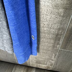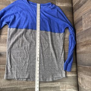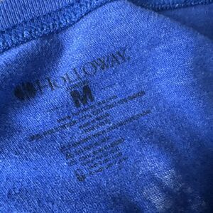 This is a Holloway long sleeve T-shirt in a size medium for juniors. It features a round neck and is a blue and gray color combination. The shirt is made of a blend of polyester and cotton, making it comfortable and breathable to wear. It is a casual top suitable for everyday wear or athletic activities.