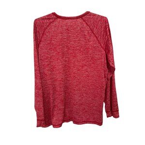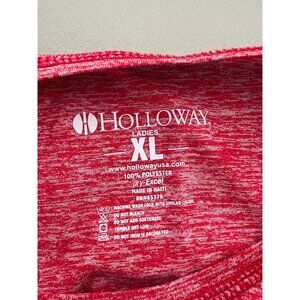 This Holloway Ladies "Volleyfreak" Red Pullover Long Sleeve Shirt, size XL, is crafted from lightweight 100% polyester. Its soft knit material supports comfort and durability during activities.