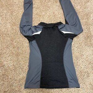 Full zip gray jacket with white & black trim