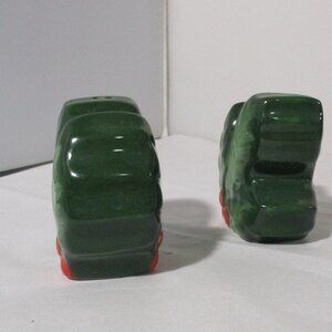 Salt and pepper shakers in shape of Holly berry leaf with 3 berries on each side