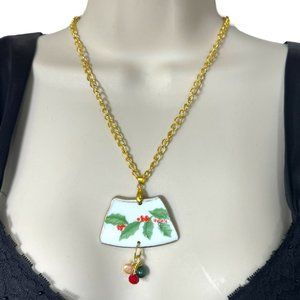 • Holiday, Berries and Bows, holly tree, Christmas necklace, gifting