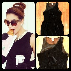 Holly Golightly from Truman Capote's Breakfast at Tiffany's (1958) which then borne the iconic Audrey Hepburn look. This dress is from the H&M trend couture collection and is a light velvet feeling dress, lined, with a side swept of mesh in the front and back for that extra flair that will sure to make you envied. It's appropriately 15in across in the waist, 17-18in across chest, and 37in in length (no stretch).