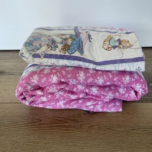 Holly Hobbie 1990 Twin Flat Sheet And Standard Pillow Case Pink Flannel