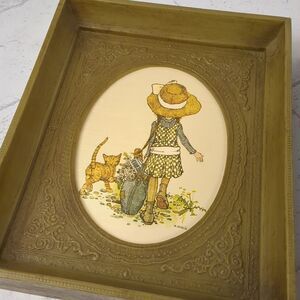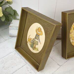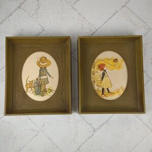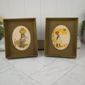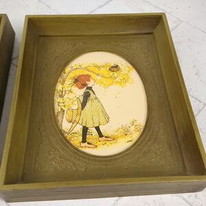 Holly Hobbie Framed Art Set of Two American Greetings 1971 Green Frame 1970s