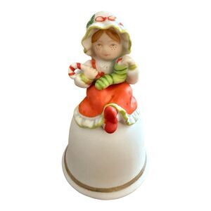 Holly Hobbie Precious Moments Christmas Bell Set Of 3 Porcelain VTG 80s