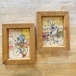 Holly Hobbie Wood Framed Pictures Wall Hangings Set Of 2 Prairie 70s Vintage GUC