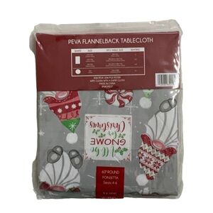 CHRISTMAS Gnome Tablecloth Holly Homes Grey Red Multicolor Round 60”