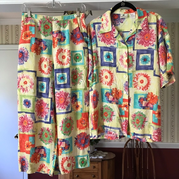 Holly Lane 2pc Top Crop Pants Cruise Colorful L