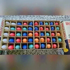 2 boxes of 25 lights (missing one bulb) Stunning set of vintage Christmas lights from 1972. Original packaging included. Beautiful glass bulbs in original box. I tested one bulb of each color and they worked great. All bulbs were not tested. Please see photos and video for specifics and condition. Feel free to reach out with any questions or if you would like to see more photos.