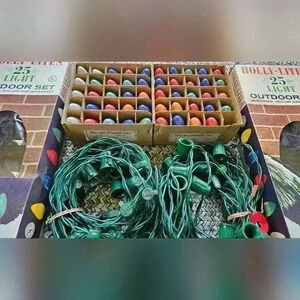 Holly Lites 2 boxes of 25 Light Outdoor Light Set Glass Multicolored bulbs Vtg