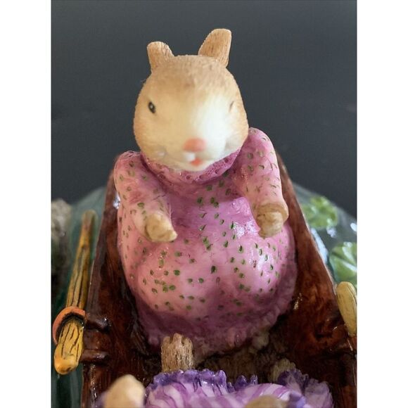 Gorgeous 2 cute rabbits laughing and enjoying a boat ride in a translucent bottom that looks like water. One rabbit ears broke but it’s still a stunning piece!