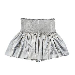 Stylish design with feminine detail, this blouse features a ruffled stand collar, covered placket and pleated sleeves.
