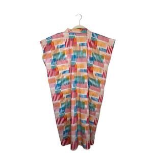 Holly Shae Size M/L Adair Multi Short Sleeve Cotton Stretch Mini Caftan Dress