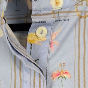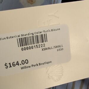 NWT Holly Shae Designs Blue Botanical Standing Collar Popover Tunic Blouse. This Cottagecore top features a standing collar, hidden 4 button placket, relaxed fit, slight high low hem, and 3/4 length cuffed sleeves. Well made with impeccable stitching and a thick 100% cotton fabric. Size XS/S. (0-4/6) Made in India.