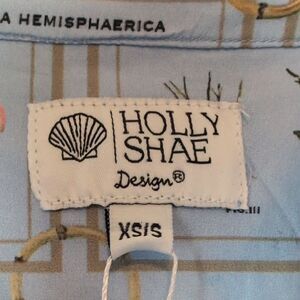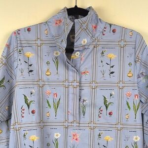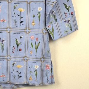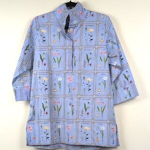 Holly Shae Designs Blue Botanical Standing Collar Tunic Blouse NWT