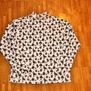 Holly Time Vintage Christmas Turtleneck Teddy Bear Print Sweater Large
