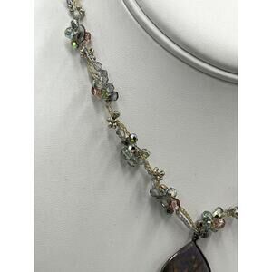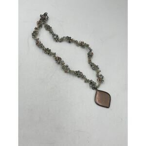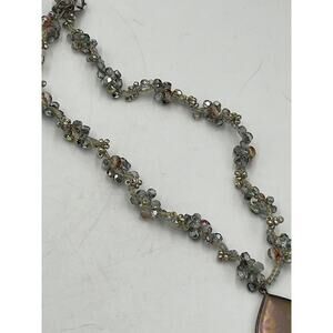 Holly Yashi necklace! The pendant is double sided, the chain is crochet with faceted silver metallic, gray and peach iridescent Czech crystals.