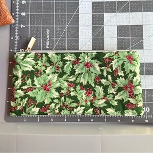 Holly berry bag pouch rose gold zipper cotton snowflake glitter linings