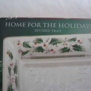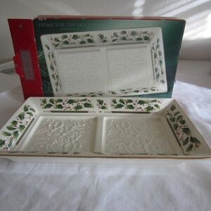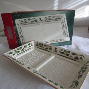 Holly holiday Home For The Holidays divided tray for Candy Nut Trinket Dish