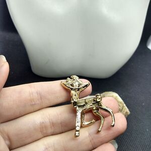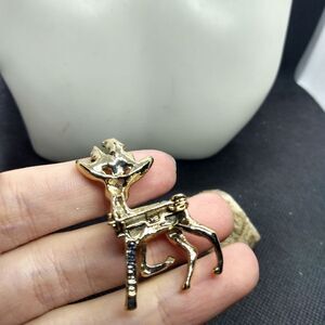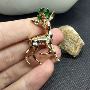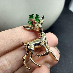 Holly folly reindeer Christmas brooch vintage