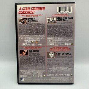 This Hollywood Hits 4-Movie Collection includes "Bobby Deerfield" (PG, 124 min), "Baby, The Rain Must Fall" (NR, 99 min), "The Chase" (NR, 135 min), and "Ship of Fools" (NR, 149 min). Featuring acclaimed casts and directors, these cinematic classics highlight gripping drama and stellar storytelling. Two discs, DVD format.