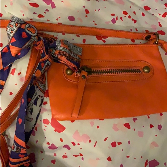 Leather crossbody purse or wristlet. Pretty orange bag with free scarf. Great for summer.