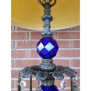 Hollywood Regency Cobalt Blue Crystal Table Lamp