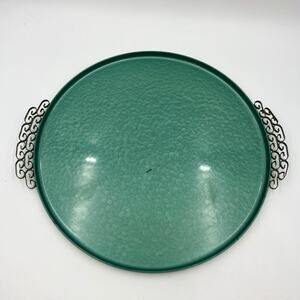 Hollywood Regency Enameled Finish Round Tray by Moire Glaze Kyes Green Vintage