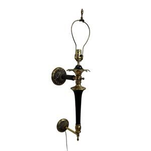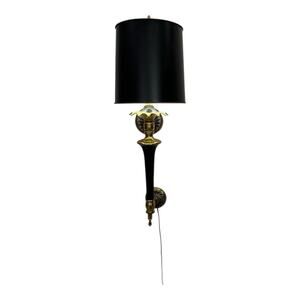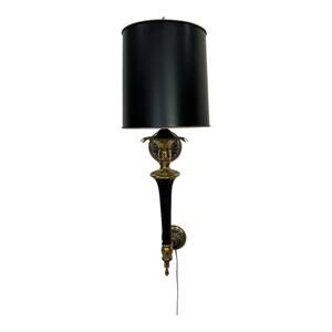 Hollywood Regency MCM Wall Sconce Lamp Gold & Black w Black Shade Tested EUC