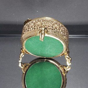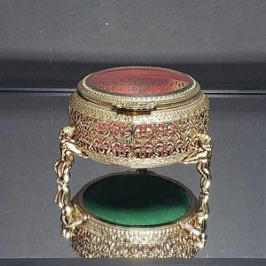 Hollywood Regency Ormolu Filigree Cherub Glass Lidded Vanity Box (Vintage)