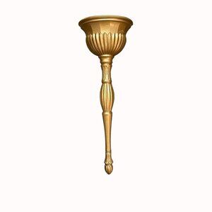 Hollywood Regency Wall Sconce Vintage Gold Tone Pocket Ornate Floral Mid Century