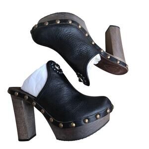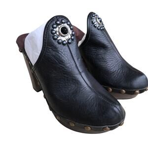 Hollywood Trading Company Womens EU Sz 39 Black Leather Heel Clogs Studded