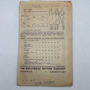 Hollywood Vintage 1940's Pattern #1395 Women's Slip and Panties Bust 34 Hip 37