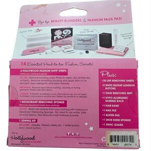 Compact fashion emergency repair kit in pink tin. Ideal for travel and quick repairs.