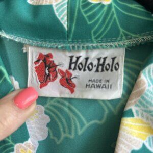 Holo Holo Vintage 70s Hawaiian Green Floral Knot Buttons Blouse Top
