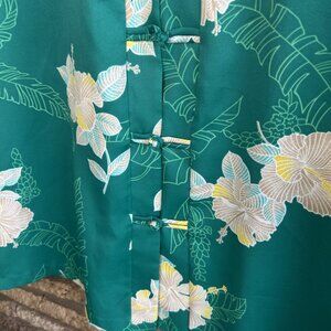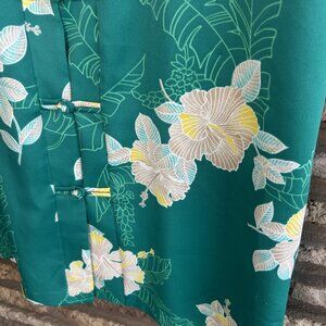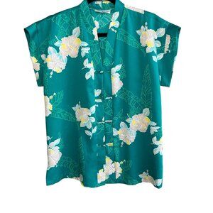 Vintage 70s 80s teal emerald green Hawaiian floral blouse
