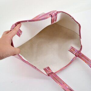 Features: Eye-catching hologram effect with a spacious interior that’s perfect for carrying all your essentials — from your phone and wallet to books and cosmetics. Made from durable, lightweight PU leather, it’s ideal for everyday outings, shopping, or even work commutes. The sturdy handle measures 12.2 inches for comfortable shoulder wear.
