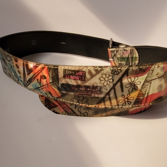 Hologram rock n roll theme unisex belt. Vinyl. Music sz large