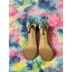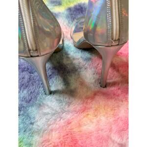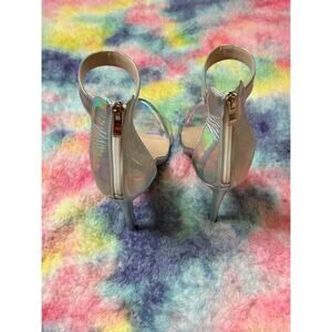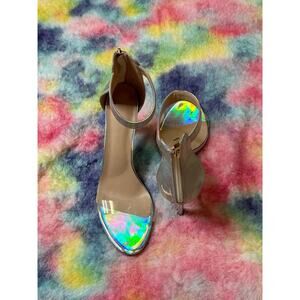Holographic 4” Stiletto Heels – Clear Strap, Zip Back