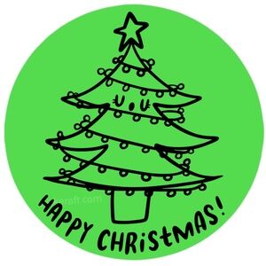 Holographic Happy Christmas Stickers • Holiday Tree Packaging Labels • 2 Inch