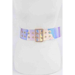 Holographic Transparent PVC Belt Wide Width Gold Double Grommets Size OS