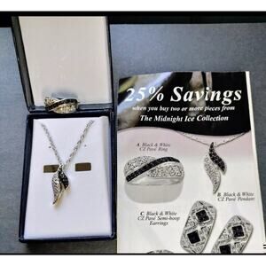 - Pave Black & Silver Necklace, Ring, & Earrings